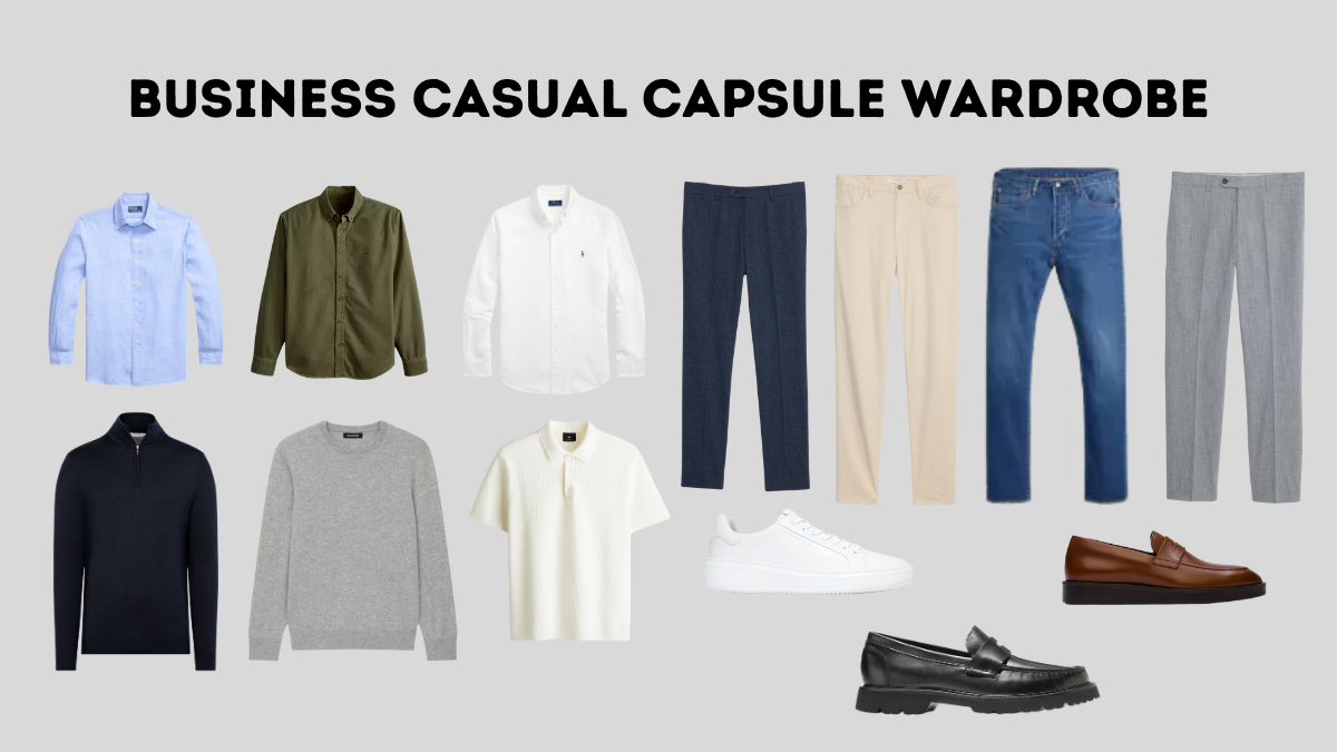 Finally, you can also take inspiration from the outfits above. Most of the items are versatile and would be a great fit for a capsule wardrobe—except for the red polo shirt, light-wash jeans, and maybe the plaid dress shirt. Aside from those pieces, the rest are pretty safe.